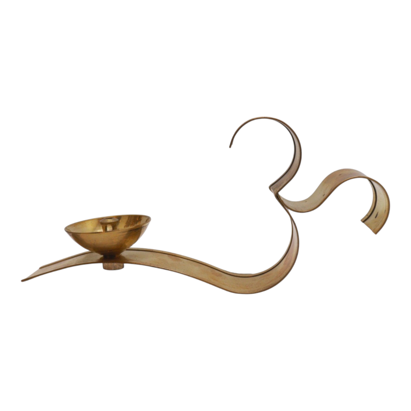 The Om Diya Aarti Stand is a handcrafted brass oil lamp designed for lighting cotton wicks with oil, symbolizing the beginning of auspicious events. Its elegant Om design adds a spiritual charm to any space.