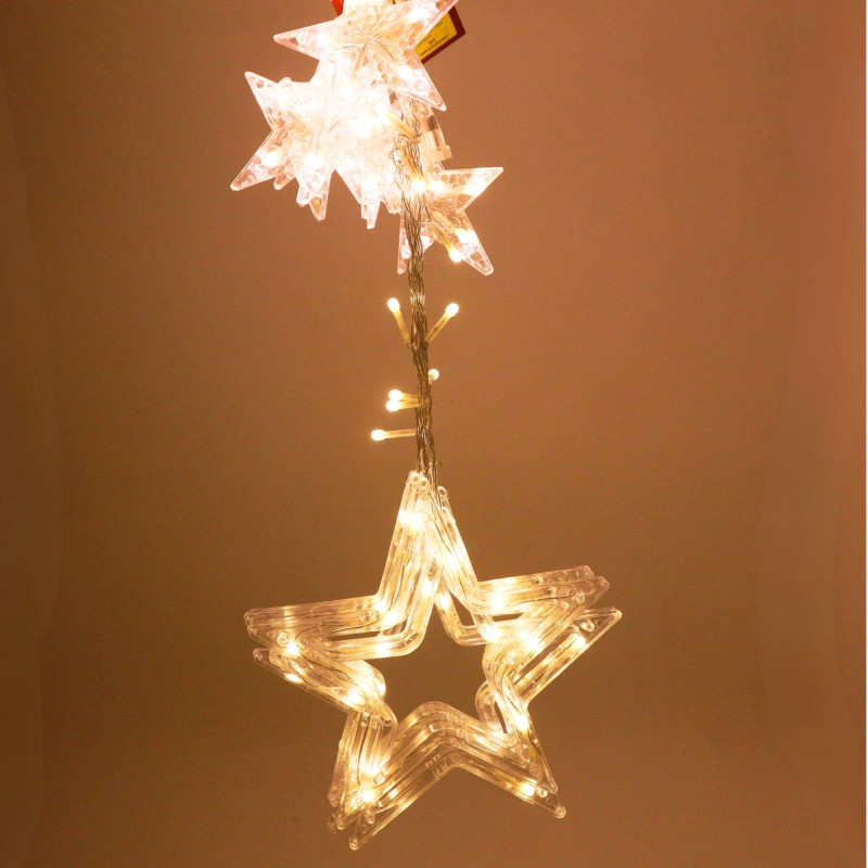 6+6 Star WW SR03233 The 6+6 Stars String Lights combine 6 large and 6 small stars, creating an enchanting ambiance ideal for festive occasions like Diwali and Christmas. With 8 lighting modes—including combination, waves, sequential, slow-glow, chasing/flash, slow fade, twinkle/flash, and steady on—these lights are perfect for Diwali home decorations and make excellent gifts. Easy to install, these curtain lights feature a low-voltage, UL-listed power supply for safety. Just plug in and unplug for hassle-free operation. They’re suitable for indoor and outdoor use. Crafted from 100% copper wire, these durable lights remain cool to the touch and have a long lifespan. Hang them across curtains, balcony railings, or glass doors to instantly enhance your space, making them perfect for weddings, parties, or any celebration.