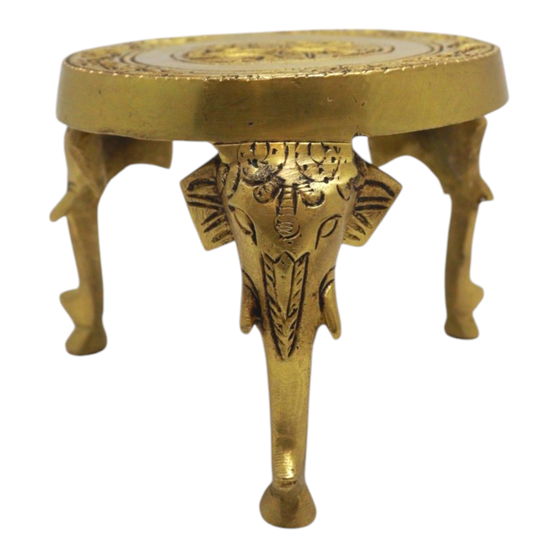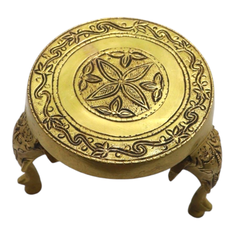 Elephant Brass Chowki Add a regal touch to your interior with the Elephant Chowki. Crafted from brass, this decorative stool features intricately designed elephant legs that embody elegance and sophistication. The stool's exquisite polish gives it a refined, royal appeal, making it the perfect addition to any room. Handcrafted by skilled artisans using traditional methods, this piece demonstrates how a simple design can be transformed into a work of art. Whether for your own home or as a thoughtful gift for loved ones, this stool adds charm and character wherever it is placed.