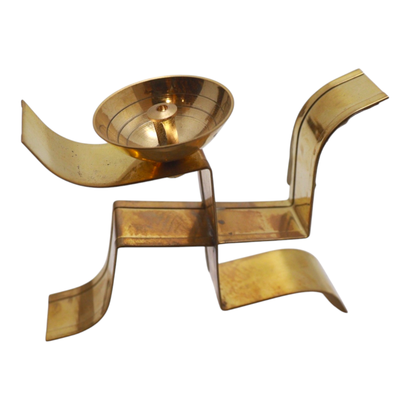 The Swastik Diya Aarti Stand, crafted from durable brass, is a perfect blend of tradition and elegance. Designed for lighting cotton wicks with oil, it’s ideal for creating a spiritual atmosphere during auspicious events.