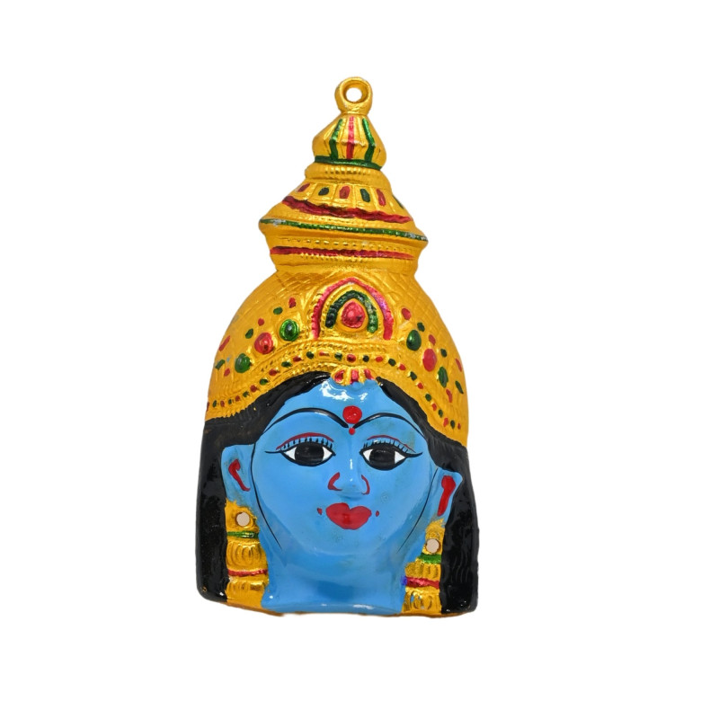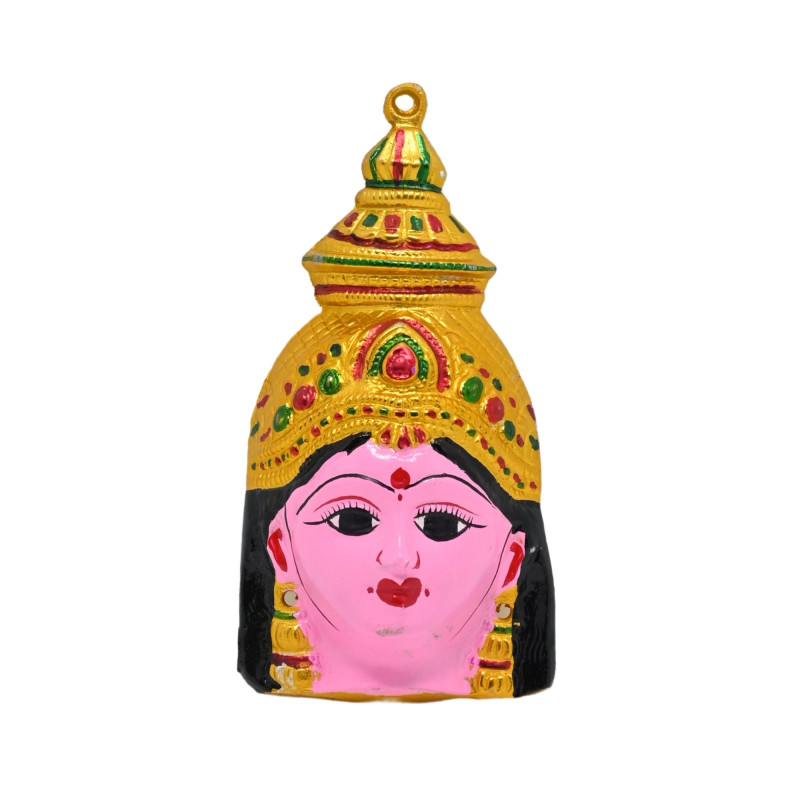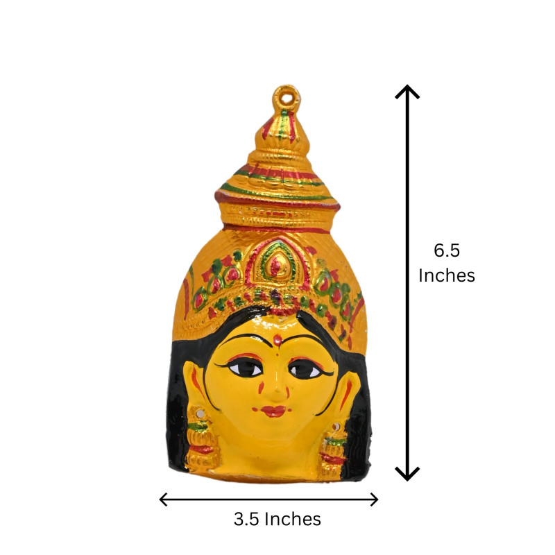 Nava Durga Ammavari Face (Small - 6.5 x 3.5 inches) The Nava Durga Ammavari Face (Small) is a beautifully crafted sacred item measuring 6.5 x 3.5 inches, perfect for enhancing your daily pooja rituals and Navratri celebrations. This smaller-sized Ammavari face is designed with great attention to detail and is ideal for compact worship spaces or as part of a personal altar. The representation of one of the nine forms of Goddess Durga adds spiritual significance and brings a divine presence to any environment.
