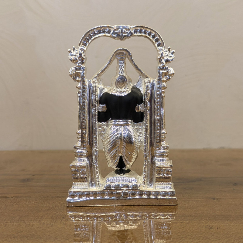 Arch Balaji Small Silver-Plated The Arch Balaji idol is meticulously crafted and finished with a silver plating to exude a serene and divine presence. The intricately designed arch adds a regal touch, making it a perfect addition to your spiritual collection.
