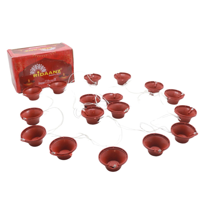 Brown Diya SR03231 The Brown Diya SR03231 lights feature a fine, bendable copper wire with plastic diyas that can conform to any shape, adding a beautiful decorative accent to your space. Flexible yet durable, these diya string lights are perfect for enhancing home décor during occasions like Diwali, Navratri, pooja ceremonies, opening ceremonies, hawan, New Year, and more. Illuminating every direction and creating a stunning ambiance for your celebrations. These lights are an ideal choice for festive decorations, providing a warm and inviting glow to your home.