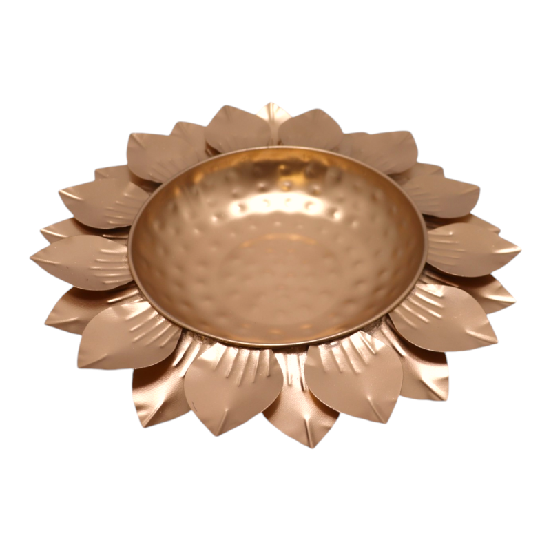 Metal Leaf Urli Set M3 A versatile leaf urli set, suitable for various decorative arrangements including Diwali. Specifications: Dimensions: 31 cm Weight: 403 g