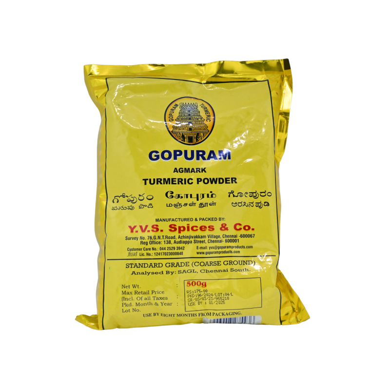 Enhance your spiritual rituals with Gopuram Turmeric, a key ingredient in traditional puja ceremonies. Known for its auspicious and purifying properties, this high-quality turmeric brings a sense of holiness and positivity to your devotional practices. Widely used in religious rituals, it symbolizes prosperity, purity, and protection, making it an essential part of offerings and sacred rites. Whether you're preparing for a special ceremony or performing your daily puja, Gopuram Turmeric ensures that every ritual is infused with devotion and spiritual significance. Its fine texture and vibrant yellow color add a divine touch to your worship space, inviting blessings and fostering an atmosphere of peace and reverence. Perfect for both personal use and communal offerings, this turmeric is a must-have for enriching your spiritual journey.