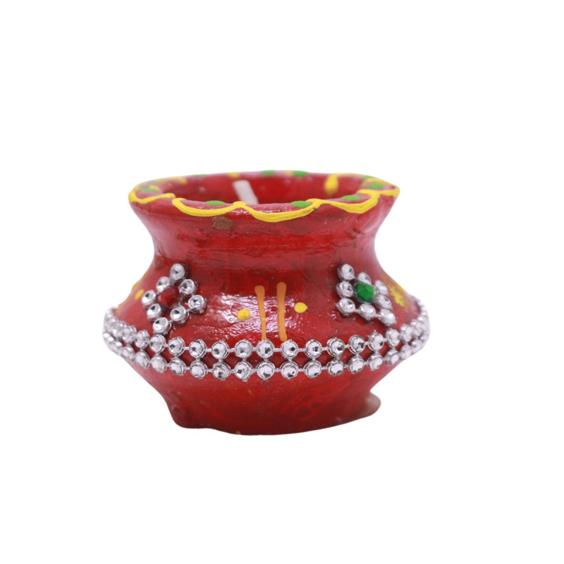 Earthen Diya Candle SR03223 Earthen Diya is a traditional Indian lamp made from an earthen pot, cloth, and a wick. The cloth is filled with oil and lit for hours at a time. The lamp is an easy way to create a calming atmosphere. Ideal for decorating mandirs, pooja rooms, and festivals such as Diwali, Dussehra, Navratri, Makar Sankranti, Durga Puja, Raksha Bandhan, Bhaidooj, Eid, Christmas, New Year, and Karwa Chauth. A must-have for Diwali or other auspicious occasions. Made for durability using modern techniques, these clay diyas are reusable and eco-friendly. They are considered auspicious and essential for Hindu religious rituals. This diya set makes a thoughtful gift for friends, relatives, and neighbors. Place on heat- or flame-resistant surfaces, keep away from flammable objects, and ensure it is out of reach of children and pets.