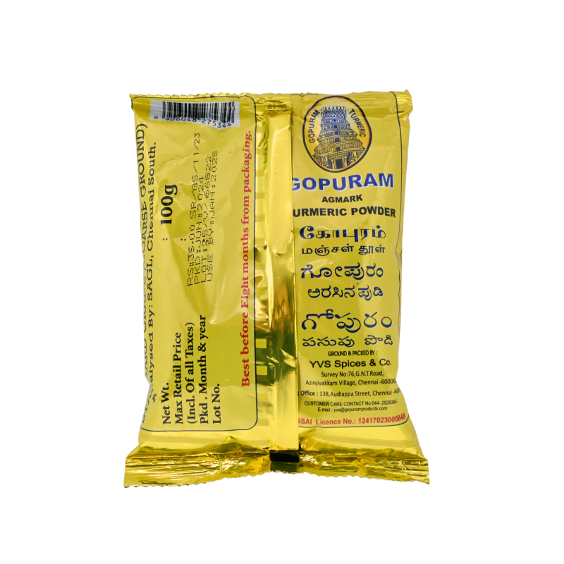 Gopuram Turmeric Enhance your spiritual rituals with Gopuram Turmeric, a key ingredient in traditional puja ceremonies. Known for its auspicious and purifying properties, this high-quality turmeric brings a sense of holiness and positivity to your devotional practices. Widely used in religious rituals, it symbolizes prosperity, purity, and protection, making it an essential part of offerings and sacred rites. Whether you're preparing for a special ceremony or performing your daily puja, Gopuram Turmeric ensures that every ritual is infused with devotion and spiritual significance. Its fine texture and vibrant yellow color add a divine touch to your worship space, inviting blessings and fostering an atmosphere of peace and reverence. Perfect for both personal use and communal offerings, this turmeric is a must-have for enriching your spiritual journey.