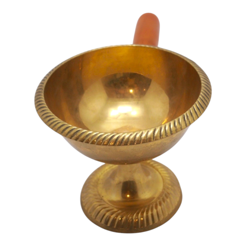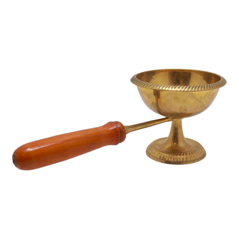 Crafted with care and precision, the Gulab Aarti Dhoop Dani Holder combines traditional artistry with modern functionality. Made of high-quality brass metal and featuring a sturdy wooden handle for comfortable handling, this elegant burner is perfect for daily rituals or special occasions. It is designed to burn **loban, bakhoor, sambrani dhoop, incense sticks, or cones**, making it a versatile addition to your puja room or living space. Traditional Design: Beautifully handcrafted by skilled Indian artisans, this burner adds an ethnic charm to your home décor. Functional and Safe: The wooden handle ensures ease of use, even when the brass holder heats up during use. Creates Ambiance: Ideal for diffusing dhoop during pooja ceremonies, it fills your space with a meditative and peaceful vibe. Repels Insects: The fragrant smoke purifies the air and keeps pests at bay, while spreading positive energy throughout your home. Perfect Gift: An excellent choice for gifting on occasions like Diwali, weddings, birthdays, anniversaries, or Valentine’s Day.