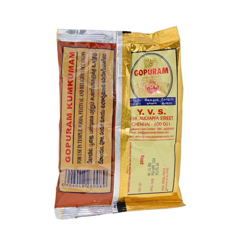 Gopuram Kumkum 200g No 10 Experience the essence of devotion with Gopuram Kumkum No 10, known for its vibrant pure red hue. This Kumkum, crafted from high-quality ingredients, symbolizes purity, energy, and reverence, enhancing the spiritual sanctity of your daily puja rituals. Its rich red color stands as a traditional symbol of auspiciousness, used extensively in religious ceremonies to invoke divine blessings. Perfectly suited for both personal and community offerings, this Kumkum brings a divine aura to your worship space. Compact and convenient, Gopuram Kumkum No 10 is ideal for everyday use, ensuring that your spiritual journey is always vibrant and meaningful.