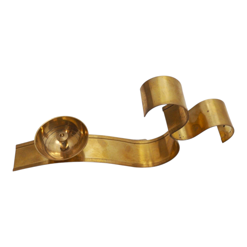 The Om Diya Aarti Stand is a handcrafted brass oil lamp designed for lighting cotton wicks with oil, symbolizing the beginning of auspicious events. Its elegant Om design adds a spiritual charm to any space.
