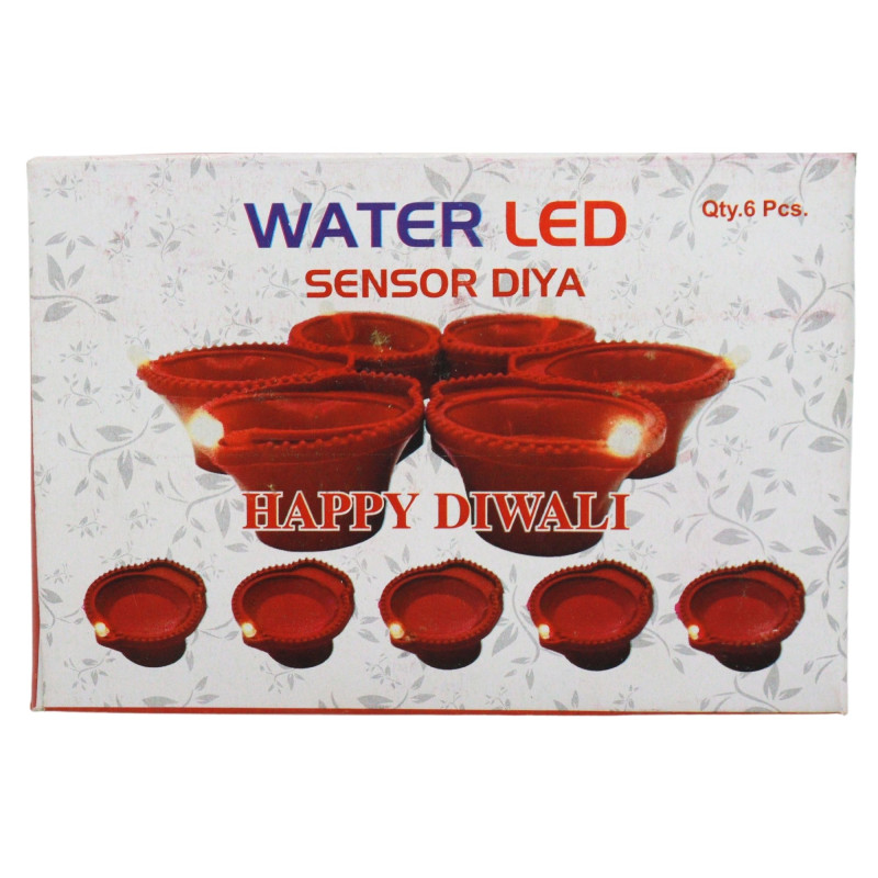 Water Sensor Diya pack of 6 SR03044 The Water Sensor Diyas Pack of 6 features innovative lights that automatically glow when they come into contact with water, adding a captivating touch to your Diwali decorations. These diyas are designed to create a mesmerizing ambiance for festive occasions, making them perfect for use in decorative displays or as part of your overall home decor. With their enchanting glow, these diyas enhance the beauty of any space, creating a warm and inviting atmosphere during celebrations. Safe and easy to use, the Water Sensor Diyas require no oil and pose no risk to children, as they can be lit simply by pouring water. They are a wonderful addition to your Diwali decor, allowing you to illuminate your festivities with elegance and style.