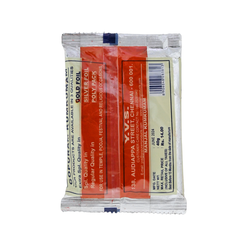 Gopuram Kumkum 40g No 10 Experience the essence of devotion with Gopuram Kumkum No 10, known for its vibrant pure red hue. This Kumkum, crafted from high-quality ingredients, symbolizes purity, energy, and reverence, enhancing the spiritual sanctity of your daily puja rituals. Its rich red color stands as a traditional symbol of auspiciousness, used extensively in religious ceremonies to invoke divine blessings. Perfectly suited for both personal and community offerings, this Kumkum brings a divine aura to your worship space. Compact and convenient, Gopuram Kumkum No 10 is ideal for everyday use, ensuring that your spiritual journey is always vibrant and meaningful.