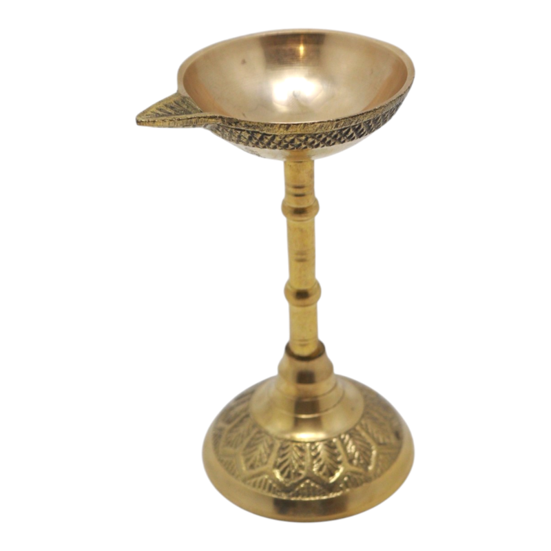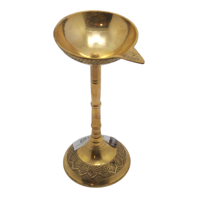Pandeep Brass Stand Diya Illuminate your spiritual space with the Pandeep Brass Stand Diya, crafted from high-quality brass for durability and lasting beauty. Designed with a classic, traditional look, this diya enhances the spiritual atmosphere of your puja and religious rituals, making it the perfect addition to any home or temple. Material: Premium quality brass, ensuring durability and a long-lasting shine. Purpose: Ideal for use during puja ceremonies, religious rituals, festivals like Diwali, and daily worship, bringing warmth and serenity to your prayer space.