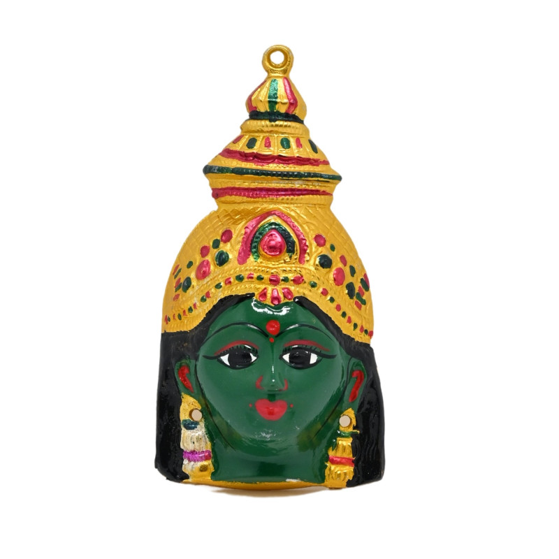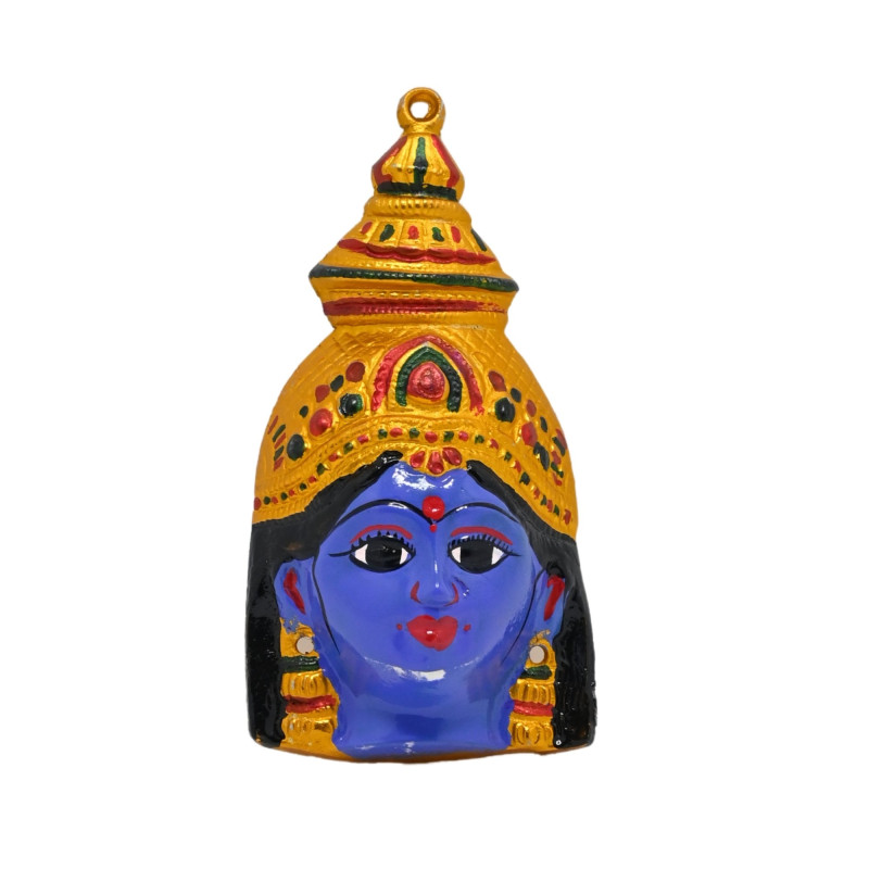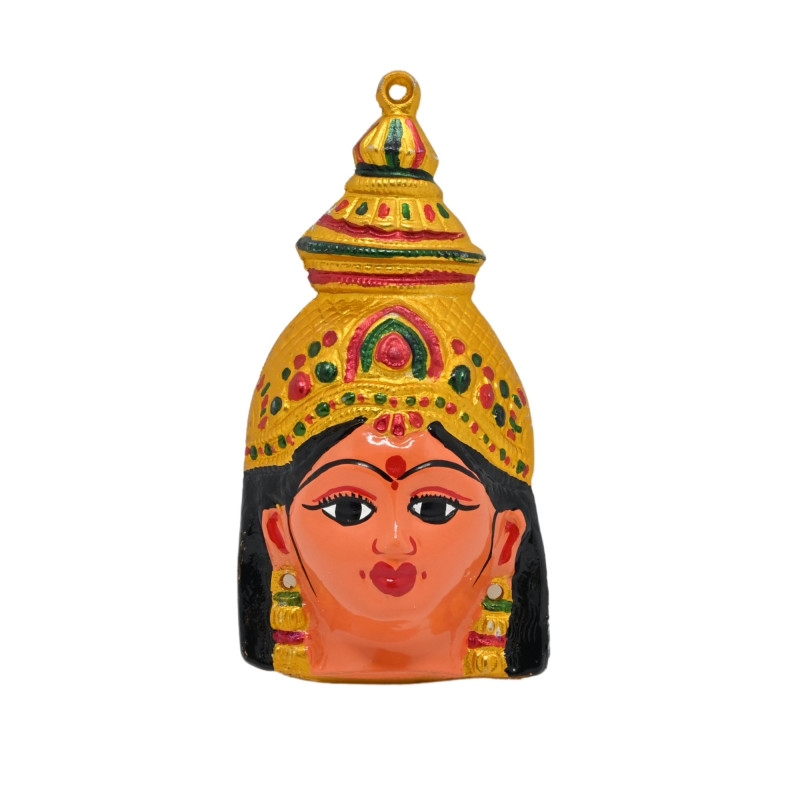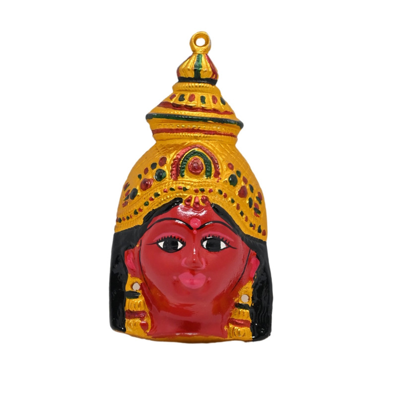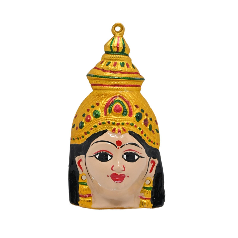 Nava Durga Ammavari Face (Small - 6.5 x 3.5 inches) The Nava Durga Ammavari Face (Small) is a beautifully crafted sacred item measuring 6.5 x 3.5 inches, perfect for enhancing your daily pooja rituals and Navratri celebrations. This smaller-sized Ammavari face is designed with great attention to detail and is ideal for compact worship spaces or as part of a personal altar. The representation of one of the nine forms of Goddess Durga adds spiritual significance and brings a divine presence to any environment.