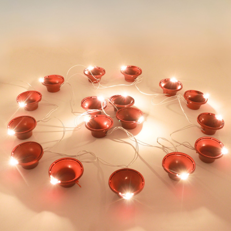 Brown Diya SR03231 The Brown Diya SR03231 lights feature a fine, bendable copper wire with plastic diyas that can conform to any shape, adding a beautiful decorative accent to your space. Flexible yet durable, these diya string lights are perfect for enhancing home décor during occasions like Diwali, Navratri, pooja ceremonies, opening ceremonies, hawan, New Year, and more. Illuminating every direction and creating a stunning ambiance for your celebrations. These lights are an ideal choice for festive decorations, providing a warm and inviting glow to your home.