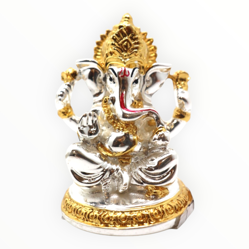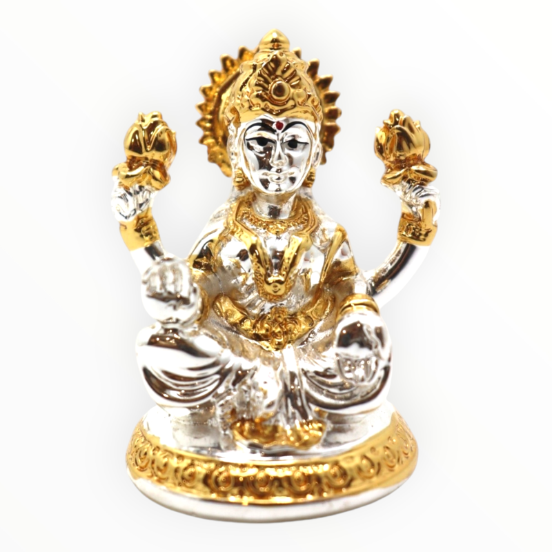 Laxmi & Ganapathi 72 TT A compact idol of Laxmi and Ganapathi, ideal for small altars and Diwali offerings. Specifications: Dimensions: 4.5 x 4 x 6 cm Weight: 75 g