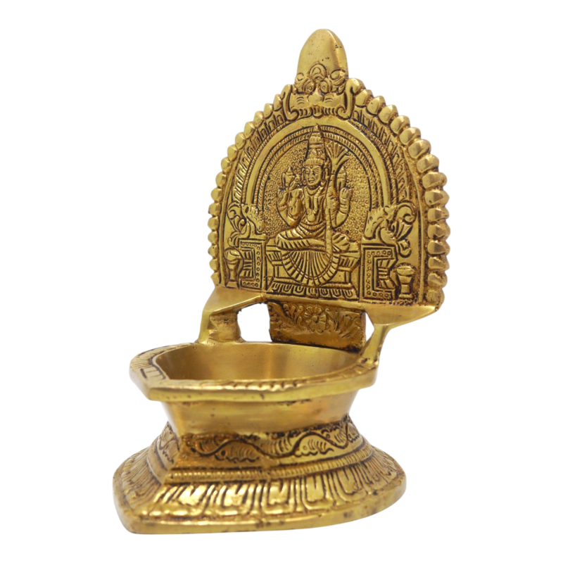 Kamakshi D/A SR01420: This Kamakshi D/A brass diya is a beautiful, intricately designed piece that embodies the divine presence of Goddess Kamakshi. Perfect for lighting during pooja or festive occasions, it radiates both spiritual energy and aesthetic elegance. Made from high-quality brass, it brings a serene and peaceful atmosphere to your home, temple, or office. The craftsmanship ensures that it will last for years, making it a valuable gift or décor item for those who appreciate spiritual beauty.