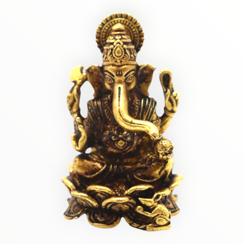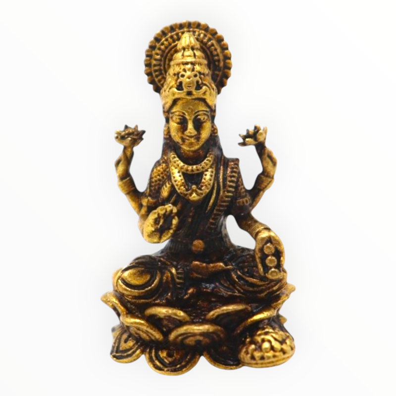 Brass Laxmi & Ganesh L A large brass idol set of Laxmi and Ganesh, suitable for Diwali pujas and decorative displays. Specifications: Dimensions: 4 cm Weight: 65 g