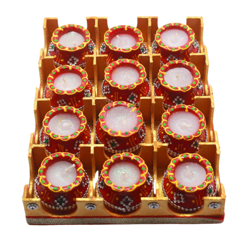 Earthen Diya Candle SR03223 Earthen Diya is a traditional Indian lamp made from an earthen pot, cloth, and a wick. The cloth is filled with oil and lit for hours at a time. The lamp is an easy way to create a calming atmosphere. Ideal for decorating mandirs, pooja rooms, and festivals such as Diwali, Dussehra, Navratri, Makar Sankranti, Durga Puja, Raksha Bandhan, Bhaidooj, Eid, Christmas, New Year, and Karwa Chauth. A must-have for Diwali or other auspicious occasions. Made for durability using modern techniques, these clay diyas are reusable and eco-friendly. They are considered auspicious and essential for Hindu religious rituals. This diya set makes a thoughtful gift for friends, relatives, and neighbors. Place on heat- or flame-resistant surfaces, keep away from flammable objects, and ensure it is out of reach of children and pets.