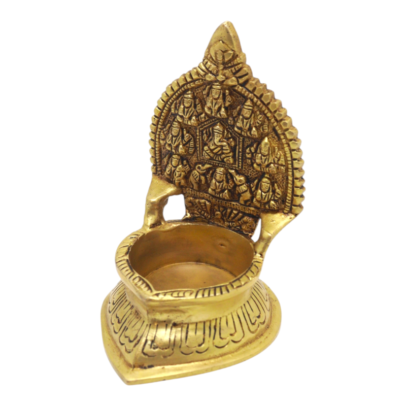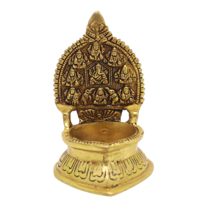 Ashta Laxmi Diya SR02953: The Ashta Laxmi Diya, crafted from solid brass, is designed to represent the eight forms of Goddess Lakshmi, bringing abundance, prosperity, and success. Perfect for lighting during religious ceremonies or as part of your home décor, this diya creates a warm, spiritual atmosphere wherever it is placed. Its elegant design makes it an ideal gift for special occasions.